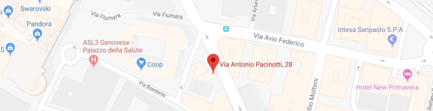 Via Pacinotti, 28r a due passi dal Centro Commerciale Fiumara, quindi comodissima da essere raggiunta in auto da tutta Genova.